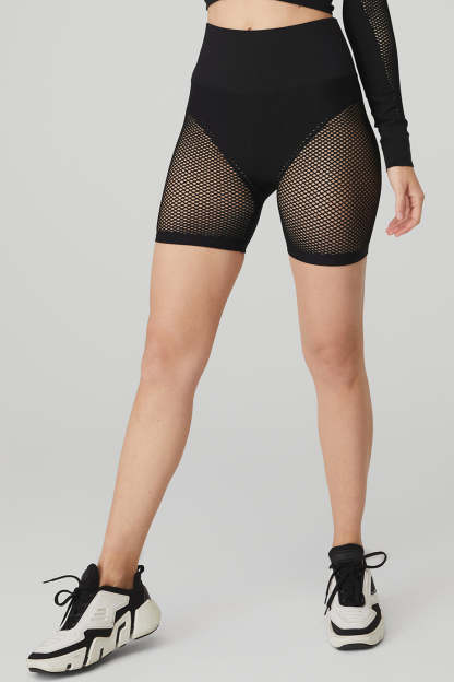 These mesh shorts! Our Seamless High-Waist Limitless Open Air Short is a total breath of fresh air. Seamless, sheer mesh stretches into a biker when they*re on, to stun in practice or on the street. Pair with the Seamless Open Air bra for a bold, head-to-toe look.