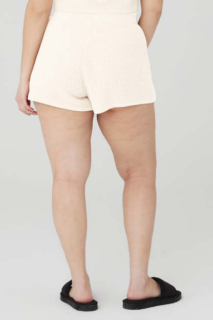 Unreal softness and an airy knit. The Cashmere High-Waist Plush Waffle Short is made with an ultra-soft lightweight cashmere yarn in a breathable, loose fit that handles sun-warmed activities like a pro. Pair with the matching Cashmere Plush Waffle Cropped Tank and serve laidback luxury all season long.