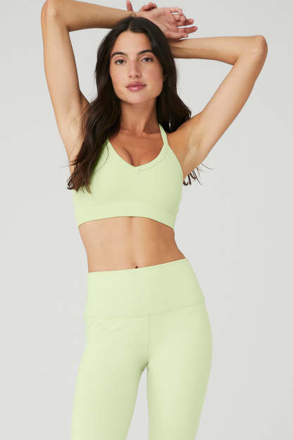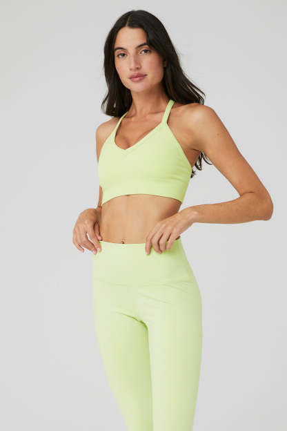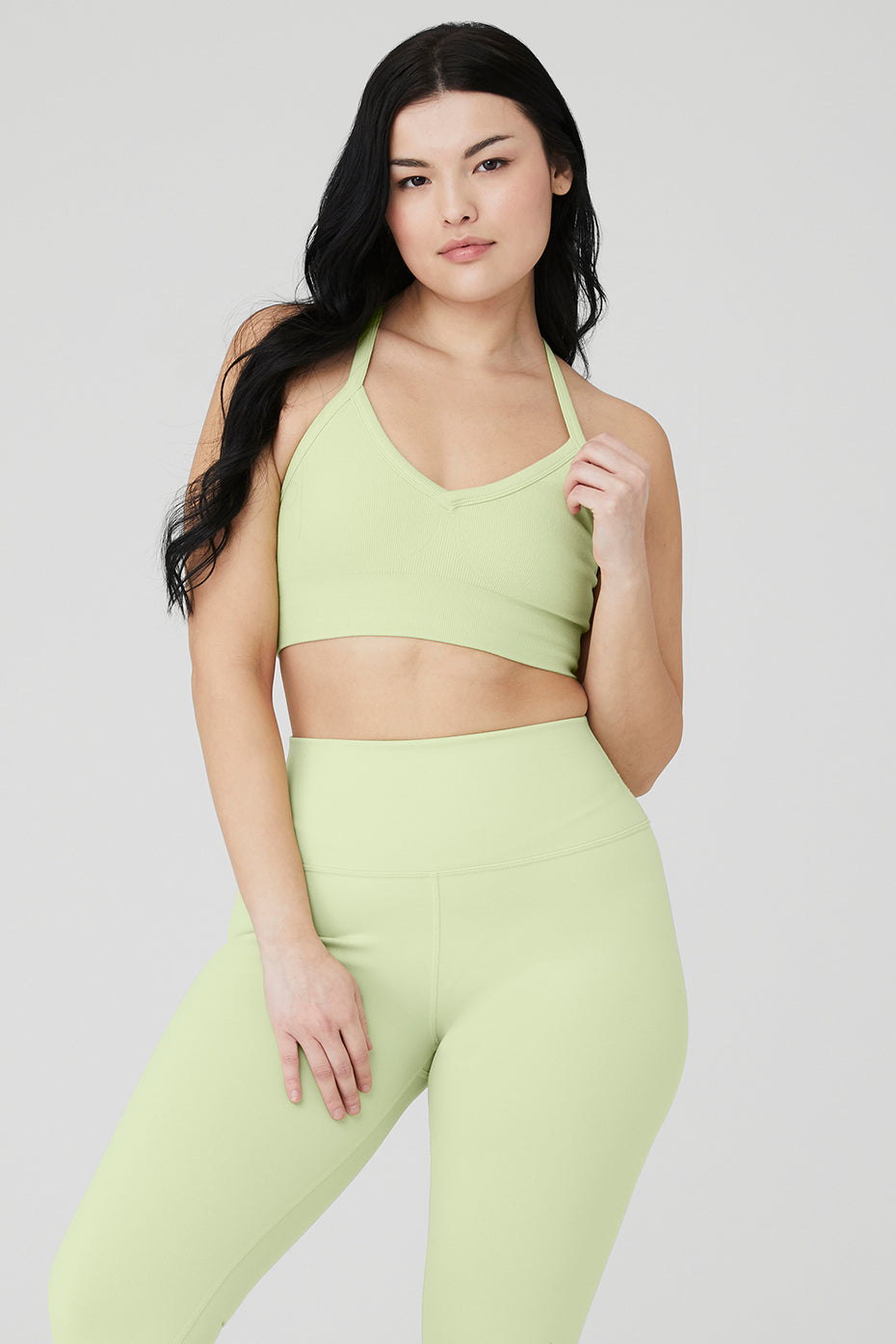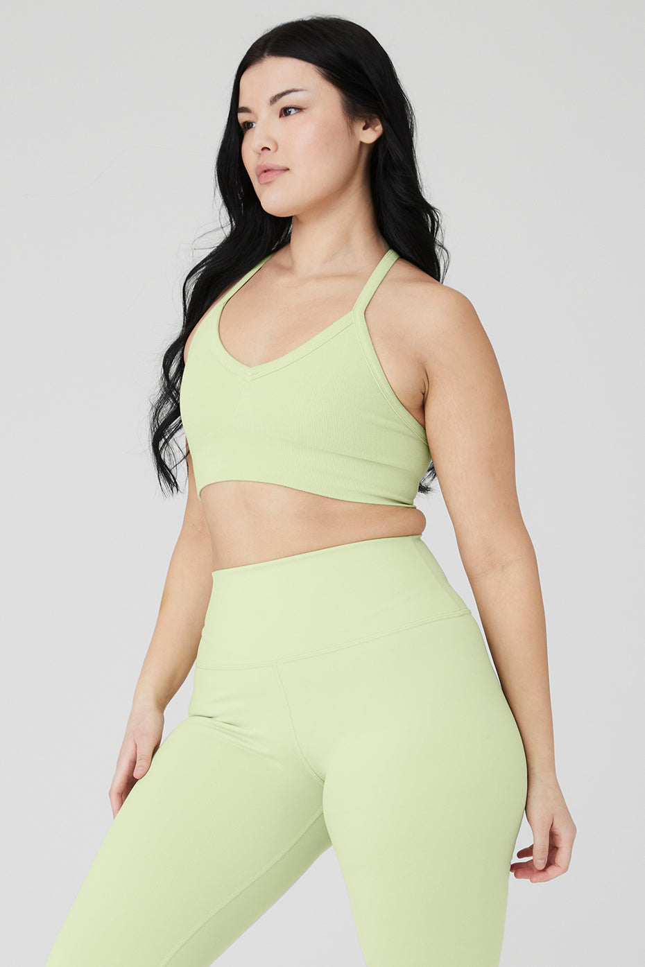 V in the front, getting down in the back. Our new Seamless Ribbed Low Back Bra has it both ways with an on-trend V-neck and crisscross low back. So soft and perfectly ribbed, this bra will be a new go-to. Wear it to the studio, then layer it under a tank post-practice.